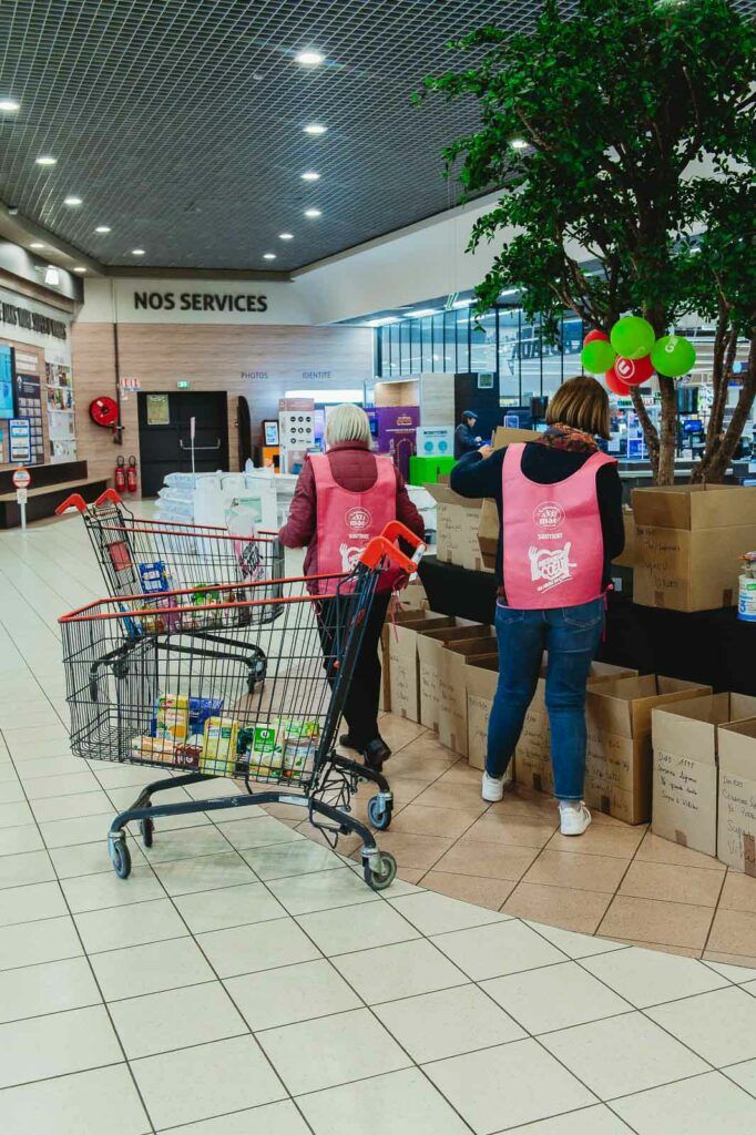 À ses côtés, Martine, bénévole depuis près de trois ans, participe activement à l’organisation de la collecte. Distribution de flyers, accueil des clients, rangement des produits donnés : les tâches s’enchaînent. Pour assurer la présence durant tout le week-end, plusieurs équipes se relaient. « En moyenne, on est une trentaine de personnes qui vont être là pour la collecte. Il y a des bénévoles, mais aussi des bénéficiaires et des jeunes qui viennent après le temps scolaire. » Une mobilisation qui permet d’assurer une présence continue à l’entrée du magasin et de sensibiliser un maximum de clients.