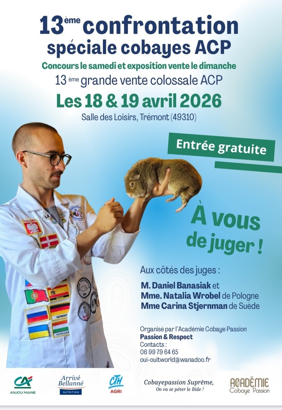 Après douze éditions consacrées à l’exposition concours de cobayes, l’Académie Cobaye Passion renouvelle son rendez-vous annuel en proposant cette année une formule enrichie, mêlant concours, formation et examen d’agrément.